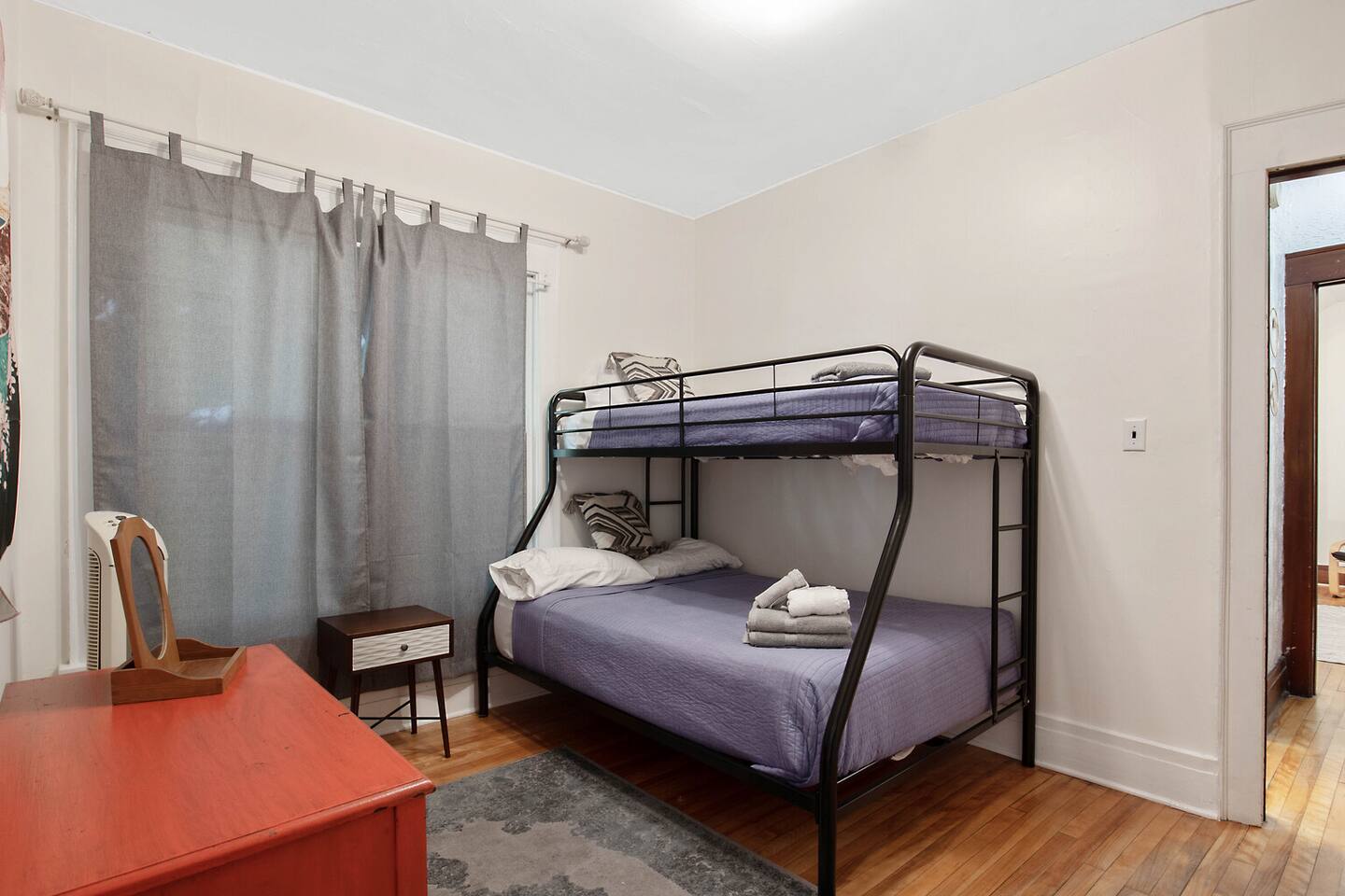 Spacious, Renovated 3BR | Ideal for Travel Nurses & Business Pros Now welcoming traveling professionals, medical staff, and construction crews for 1-6 month stays or more! Step into a beautifully renovated turn-of-the-century apartment featuring original charm with modern updates. With three spacious bedrooms and room for up to 8 guests, this home is perfect for extended stays. Why You'll Love It: β Prime Location β Just 1.5 miles from major Syracuse hospitals, job sites & downtown β Historic Charm Meets Modern Comfort β Original woodwork, tin ceilings & a butlerβs pantry, plus a new kitchen & bath β Work & Relax β Fast WiFi, multiple laptop-friendly workspaces & a Smart Roku TV (Netflix, Hulu & more β BYO login) β Comfortable Sleeping Arrangements: Room 1: Queen bed + reading nook Room 2: Twin-over-full bunk bed (sleeps 3) Room 3: Full bed (sleeps 2) Living Room: Large, cozy couch (sleeps 1) β Fully Equipped Kitchen β Full-size fridge, stainless steel oven, microwave, coffee maker & more Enjoy the warmth of the electric fireplace in the open-concept living & dining area, or gather around the dining table after a long day. πΌ Special Discount for Traveling Medical Professionals! Contact us today to learn more. π Book now and experience a perfect blend of historic charm & modern convenience!