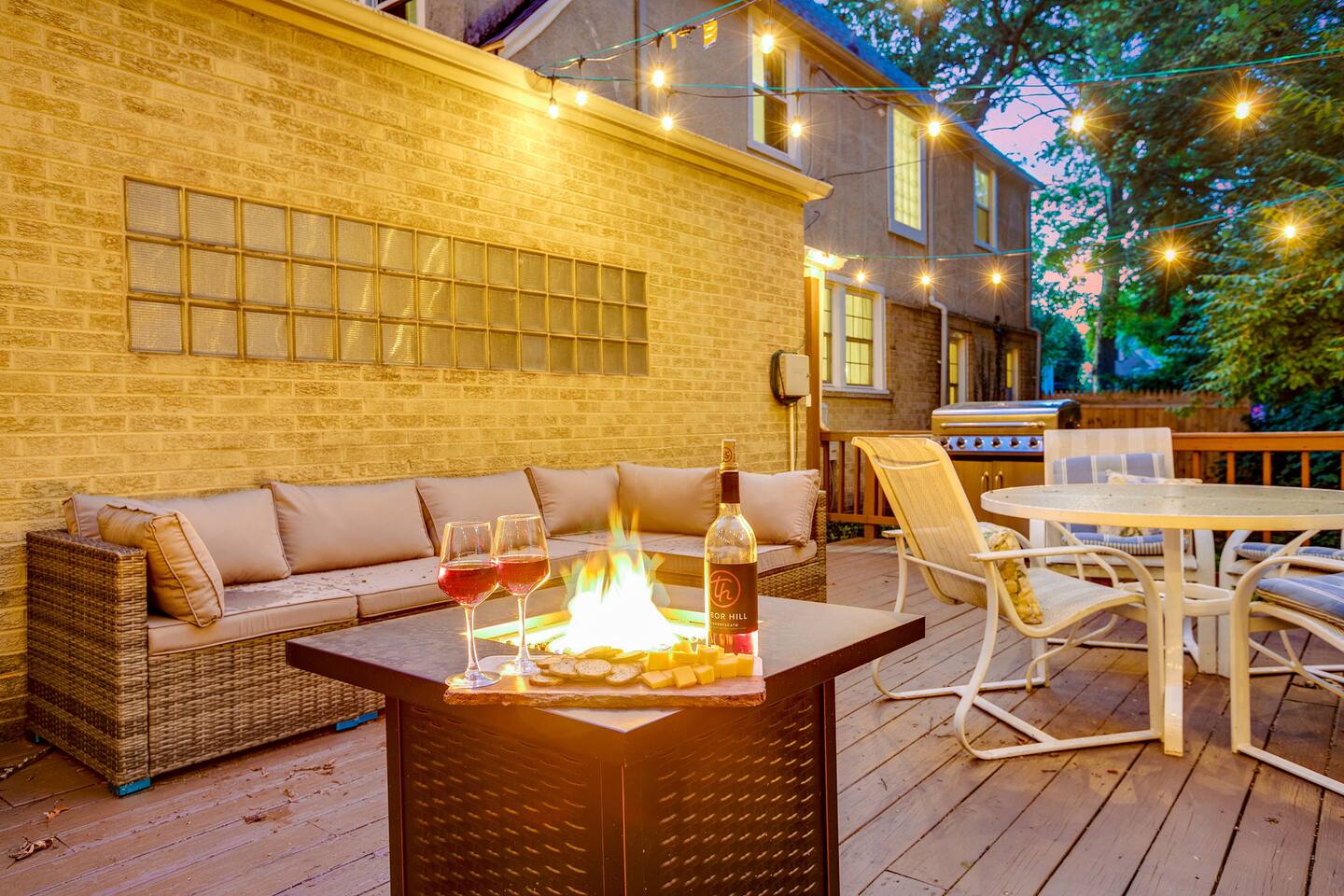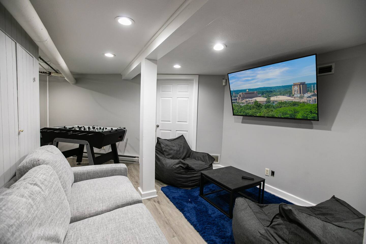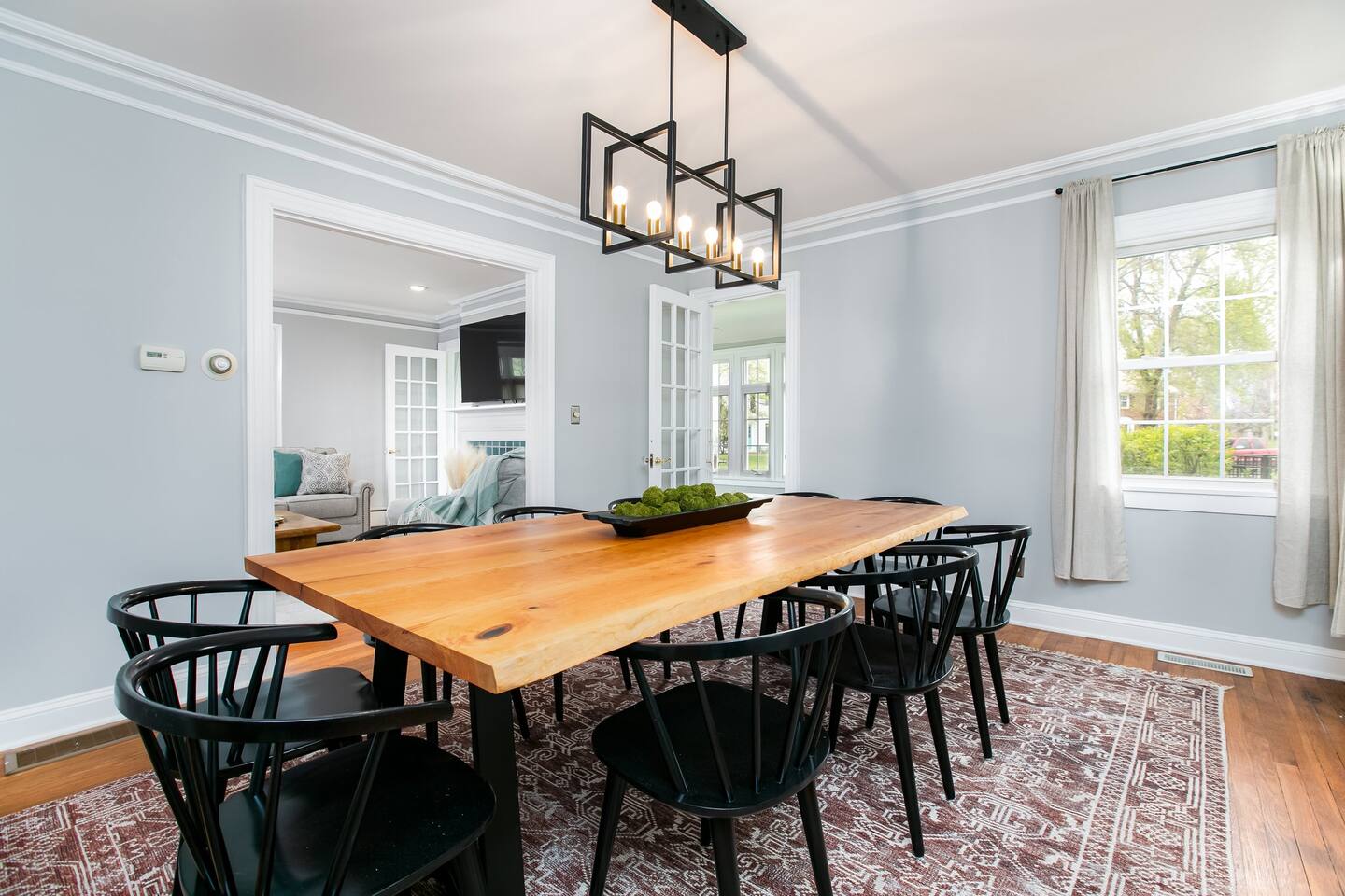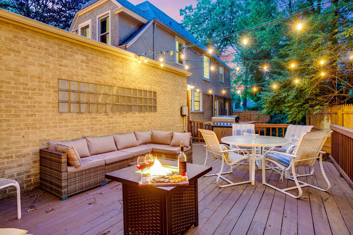 ⭑Master Bedroom:⭑ ✔ High-end King sized bed with premium linens ✔ Spacious walk in closet with ample storage ✔ Room-darkening shades for restful sleep ✔ Smart TV for your entertainment ✔ Private sitting area for your comfort ⭑Second Bedroom:⭑ ✔ Comfortable queen bed with cozy bedding ✔ Closet and dresser for storage ✔ Writing desk for work or play ⭑Third Bedroom:⭑ ✔ Plush double bed with fresh linens ✔ Bunk beds for additional guests ✔ Room-darkening shades ⭑Fourth Bedroom:⭑ ✔ High-quality queen bed with extra pillows and blankets ✔ Closet and storage space ✔ Room-darkening shades ⭑Living Room:⭑ ✔ Queen sleeper sofa for additional guests ✔ HDTV, game table, and desk for work or play ✔ Sunroom perfect for kids or morning yoga (mats provided) ⭑Kitchen and Dining Area:⭑ ✔ Fully equipped kitchen with refrigerator, freezer, stove, oven, microwave, and dishwasher ✔ Coffee maker (Keurig), hot water kettle, and wine glasses ✔ Cooking basics: pots, pans, oil, salt, and pepper ✔ Locally crafted 10-person dining table for family meals ⭑Bathrooms:⭑ ✔ Hair dryer, fresh towels, and full bath essentials ✔ Two bathrooms with modern fixtures ⭑Outdoor Space:⭑ ✔ Deck with sectional outdoor couch and propane fire pit ✔ BBQ grill and outdoor dining area ✔ Patio furniture for relaxing evenings ⭑Game Room:⭑ ✔ Foosball table, Ms. PacMan console (with Galaga and Dig Dug) ✔ TV for movies or gaming ⭑Additional Amenities:⭑ ✔ Washer, dryer, and iron for laundry needs ✔ Dedicated workspace with WiFi ✔ Pet-friendly accommodations ⭑Safety and Security:⭑ ✔ Smoke alarm, carbon monoxide alarm, and fire extinguisher ✔ Noise decibel monitors and exterior security cameras (front door and backyard) ✔ First aid kit for emergencies ⭑Entertainment and Connectivity:⭑ ✔ HDTV for streaming and entertainment ✔ Board games and game room for family fun ⭑Heating and Cooling:⭑ ✔ Central air conditioning and heating for year-round comfort ✔ Indoor fireplace for cozy evenings ⭑Parking and Facilities:⭑ ✔ Free parking on premises ✔ Garage parking available ⭑Services:⭑ ✔ Self check-in with keypad for convenience ✔ Long-term stays (28+ days) welcome ✔ Pets allowed (assistance animals always welcome) Your stay at The Grand Dame promises luxurious comfort, family-friendly fun, and a prime location near Notre Dame. Book now and make your South Bend adventure unforgettable! ⭑Conclusion⭑ Don’t wait—reserve your dates today and experience the perfect blend of luxury and convenience at The Grand Dame! ⭑Points of Interest⭑ 🏛️ Studebaker National Museum – ~7 min / ~2.2 mi 🏫 The History Museum & Oliver Mansion – ~7 min / ~2.2 mi 🖼️ South Bend Museum of Art – ~7 min / ~2.1 mi 🦁 Potawatomi Zoo – ~8 min / ~2.5 mi 🌿 Potawatomi Conservatories – ~8 min / ~2.5 mi 🎭 Morris Performing Arts Center – ~6 min / ~2.0 mi 🚶 Downtown South Bend & River Lights – ~6 min / ~2.0 mi 🏫 University of Notre Dame Campus & Basilica of the Sacred Heart – ~10 min / ~3.5 mi 🦖 Indiana Dinosaur Museum – ~10 min / ~3.5 mi 💦 East Race Waterway – ~6 min / ~1.8 mi ⚾ Four Winds Field (South Bend Cubs Baseball) – ~7 min / ~2.5 mi 👑 Tippecanoe Place (Studebaker Mansion Restaurant) – ~7 min / ~2.3 mi 🌳 Leeper Park – ~6 min / ~1.7 mi 🏘️ Howard Park Historic District – ~5 min / ~1.5 mi 🏛️ Civil Rights Heritage Center (IU South Bend) – ~8 min / ~2.7 mi 🖼️ Raclin Murphy Museum of Art (Notre Dame) – ~10 min / ~3.5 mi 🌳 Rum Village Park – ~12 min / ~3.8 mi 🌳 Potawatomi Park (broader area) – ~8 min / ~2.5 mi 🏥 South Bend Chocolate Café (Chocolate Factory) – ~9 min / ~3.0 mi 🛍️ University Park Mall (Mishawaka) – ~12 min / ~5 mi