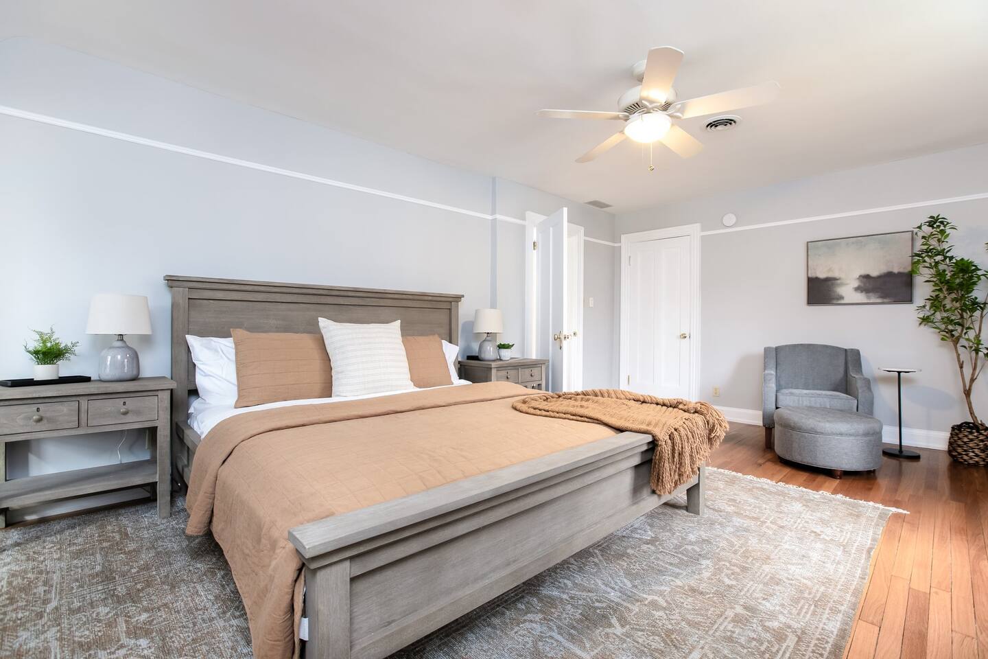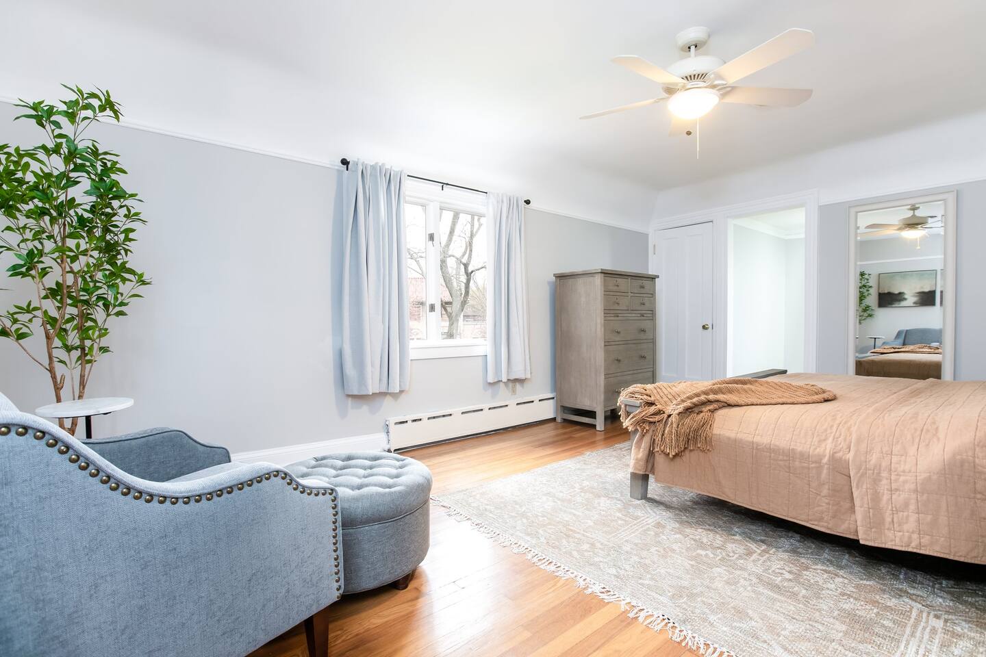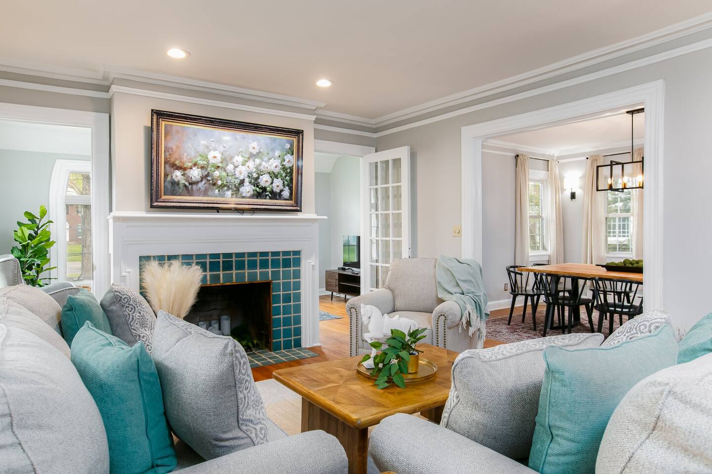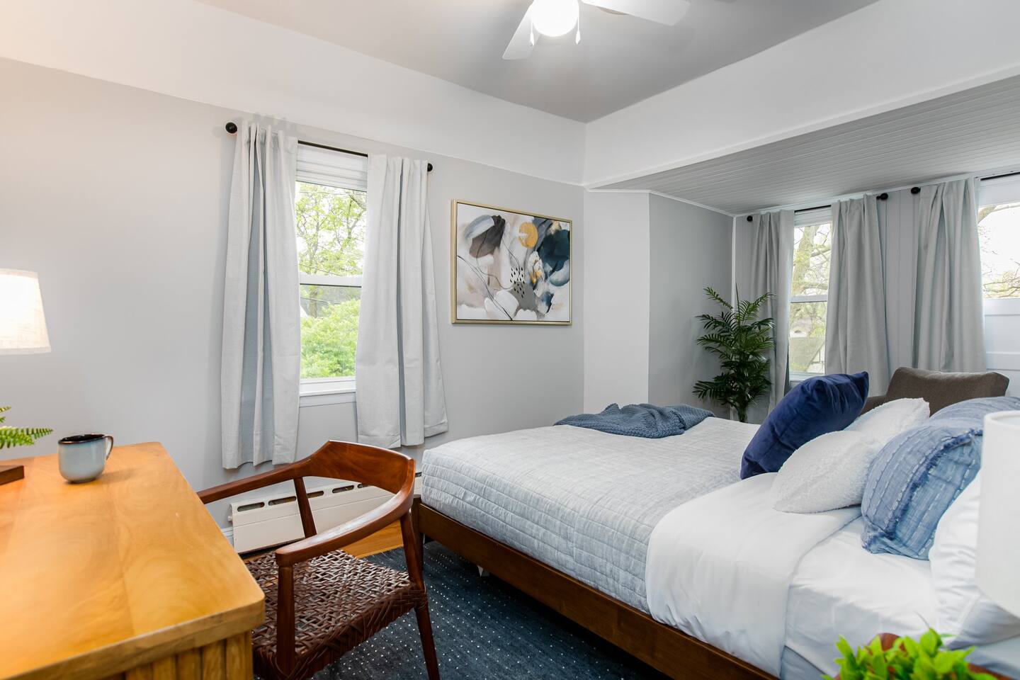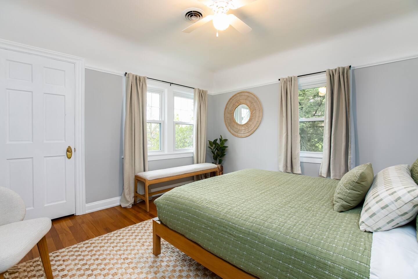 ⭑Master Bedroom:⭑ ✔ High-end King sized bed with premium linens ✔ Spacious walk in closet with ample storage ✔ Room-darkening shades for restful sleep ✔ Smart TV for your entertainment ✔ Private sitting area for your comfort ⭑Second Bedroom:⭑ ✔ Comfortable queen bed with cozy bedding ✔ Closet and dresser for storage ✔ Writing desk for work or play ⭑Third Bedroom:⭑ ✔ Plush double bed with fresh linens ✔ Bunk beds for additional guests ✔ Room-darkening shades ⭑Fourth Bedroom:⭑ ✔ High-quality queen bed with extra pillows and blankets ✔ Closet and storage space ✔ Room-darkening shades ⭑Living Room:⭑ ✔ Queen sleeper sofa for additional guests ✔ HDTV, game table, and desk for work or play ✔ Sunroom perfect for kids or morning yoga (mats provided) ⭑Kitchen and Dining Area:⭑ ✔ Fully equipped kitchen with refrigerator, freezer, stove, oven, microwave, and dishwasher ✔ Coffee maker (Keurig), hot water kettle, and wine glasses ✔ Cooking basics: pots, pans, oil, salt, and pepper ✔ Locally crafted 10-person dining table for family meals ⭑Bathrooms:⭑ ✔ Hair dryer, fresh towels, and full bath essentials ✔ Two bathrooms with modern fixtures ⭑Outdoor Space:⭑ ✔ Deck with sectional outdoor couch and propane fire pit ✔ BBQ grill and outdoor dining area ✔ Patio furniture for relaxing evenings ⭑Game Room:⭑ ✔ Foosball table, Ms. PacMan console (with Galaga and Dig Dug) ✔ TV for movies or gaming ⭑Additional Amenities:⭑ ✔ Washer, dryer, and iron for laundry needs ✔ Dedicated workspace with WiFi ✔ Pet-friendly accommodations ⭑Safety and Security:⭑ ✔ Smoke alarm, carbon monoxide alarm, and fire extinguisher ✔ Noise decibel monitors and exterior security cameras (front door and backyard) ✔ First aid kit for emergencies ⭑Entertainment and Connectivity:⭑ ✔ HDTV for streaming and entertainment ✔ Board games and game room for family fun ⭑Heating and Cooling:⭑ ✔ Central air conditioning and heating for year-round comfort ✔ Indoor fireplace for cozy evenings ⭑Parking and Facilities:⭑ ✔ Free parking on premises ✔ Garage parking available ⭑Services:⭑ ✔ Self check-in with keypad for convenience ✔ Long-term stays (28+ days) welcome ✔ Pets allowed (assistance animals always welcome) Your stay at The Grand Dame promises luxurious comfort, family-friendly fun, and a prime location near Notre Dame. Book now and make your South Bend adventure unforgettable! ⭑Conclusion⭑ Don’t wait—reserve your dates today and experience the perfect blend of luxury and convenience at The Grand Dame! ⭑Points of Interest⭑ 🏛️ Studebaker National Museum – ~7 min / ~2.2 mi 🏫 The History Museum & Oliver Mansion – ~7 min / ~2.2 mi 🖼️ South Bend Museum of Art – ~7 min / ~2.1 mi 🦁 Potawatomi Zoo – ~8 min / ~2.5 mi 🌿 Potawatomi Conservatories – ~8 min / ~2.5 mi 🎭 Morris Performing Arts Center – ~6 min / ~2.0 mi 🚶 Downtown South Bend & River Lights – ~6 min / ~2.0 mi 🏫 University of Notre Dame Campus & Basilica of the Sacred Heart – ~10 min / ~3.5 mi 🦖 Indiana Dinosaur Museum – ~10 min / ~3.5 mi 💦 East Race Waterway – ~6 min / ~1.8 mi ⚾ Four Winds Field (South Bend Cubs Baseball) – ~7 min / ~2.5 mi 👑 Tippecanoe Place (Studebaker Mansion Restaurant) – ~7 min / ~2.3 mi 🌳 Leeper Park – ~6 min / ~1.7 mi 🏘️ Howard Park Historic District – ~5 min / ~1.5 mi 🏛️ Civil Rights Heritage Center (IU South Bend) – ~8 min / ~2.7 mi 🖼️ Raclin Murphy Museum of Art (Notre Dame) – ~10 min / ~3.5 mi 🌳 Rum Village Park – ~12 min / ~3.8 mi 🌳 Potawatomi Park (broader area) – ~8 min / ~2.5 mi 🏥 South Bend Chocolate Café (Chocolate Factory) – ~9 min / ~3.0 mi 🛍️ University Park Mall (Mishawaka) – ~12 min / ~5 mi