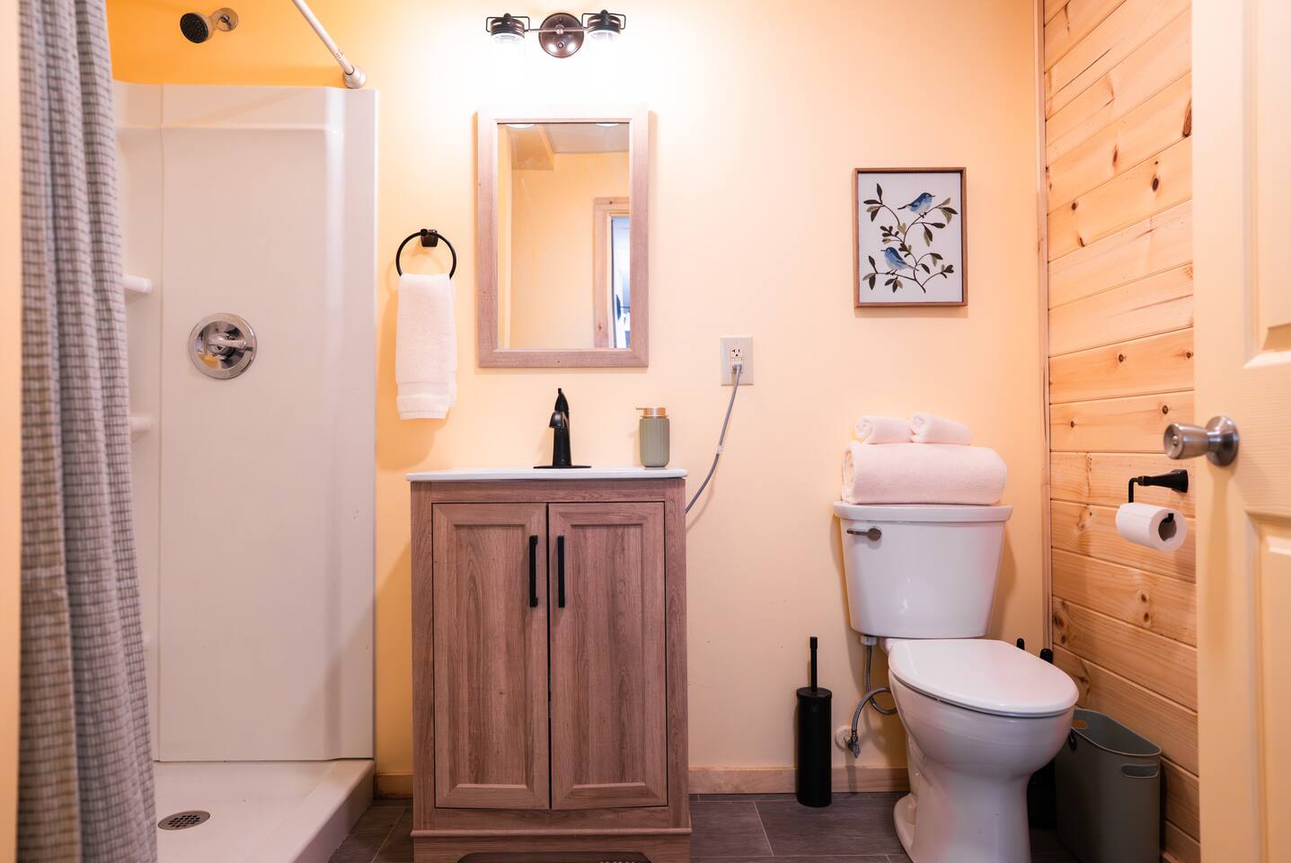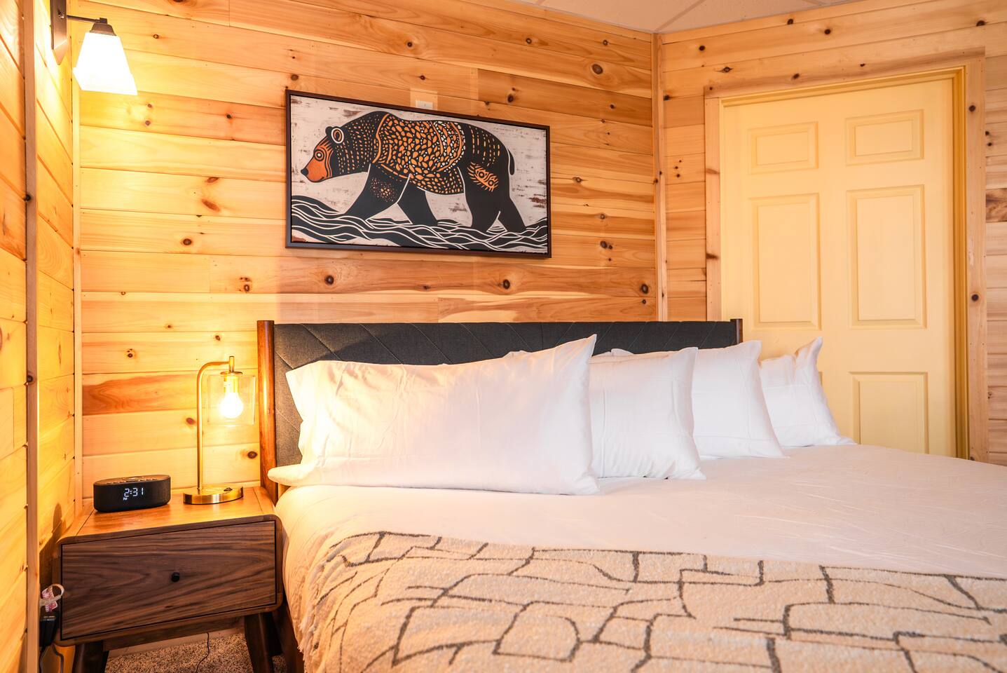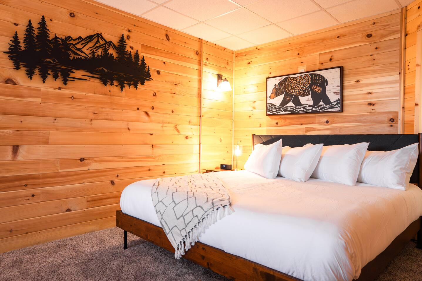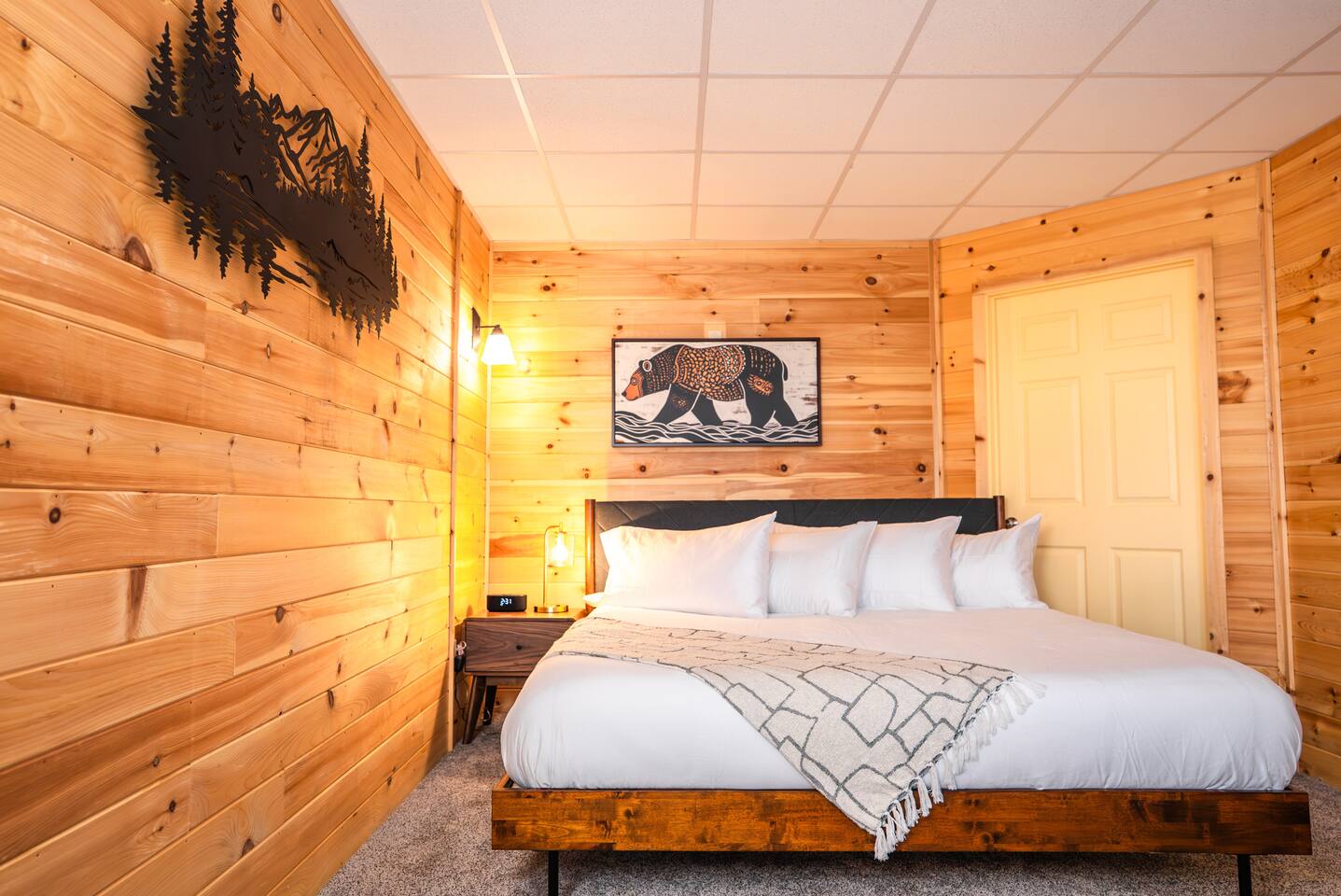 The full property is yours: all 5 bedrooms, 3 bathrooms, game room, pool, hot tub, sauna, fire pits, grill, full kitchen, laundry, and 5+ acres. Self check-in via smart lock; your access code arrives before you do. You do not have access to any locked areas.