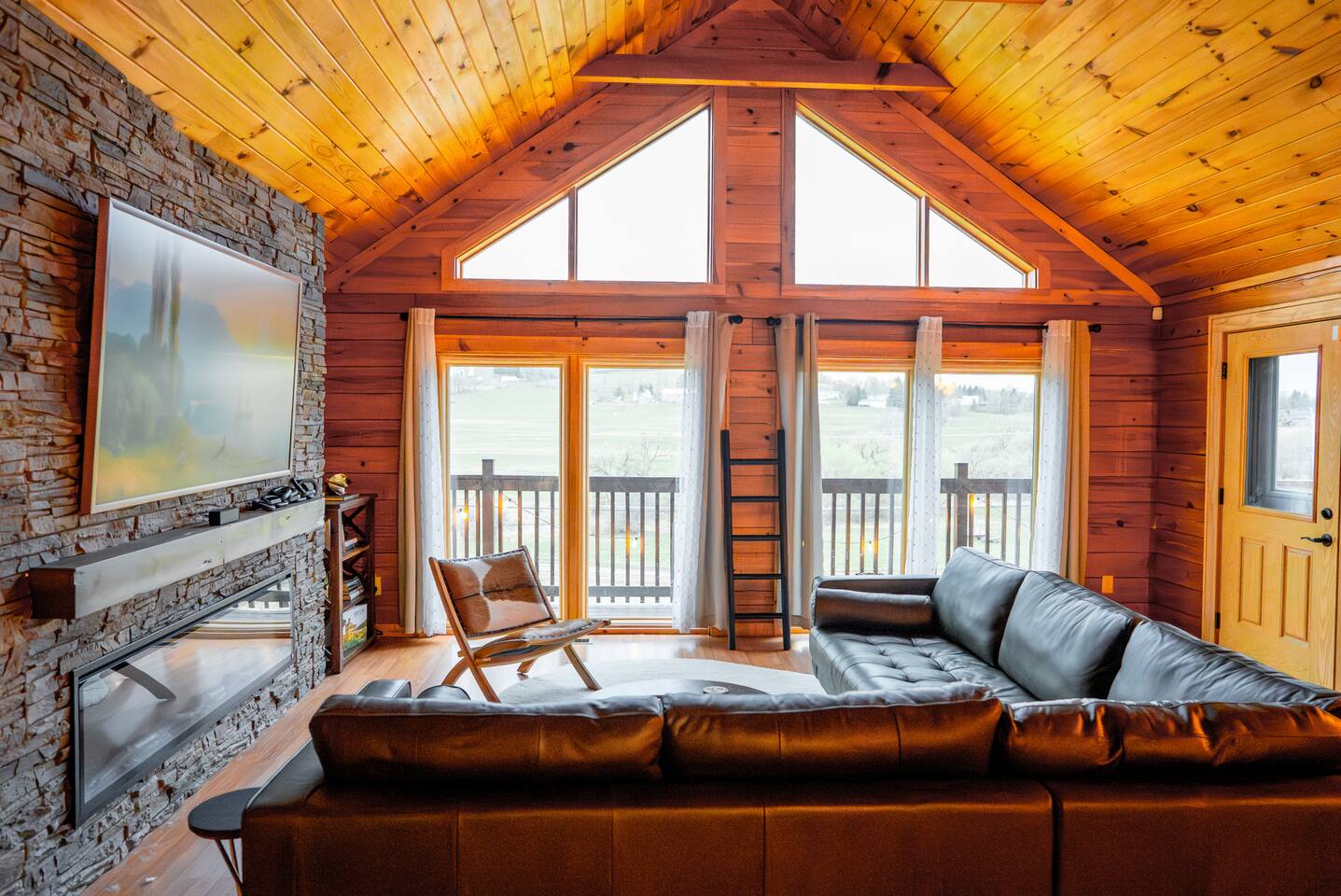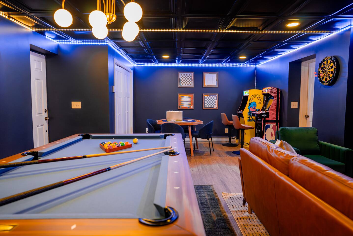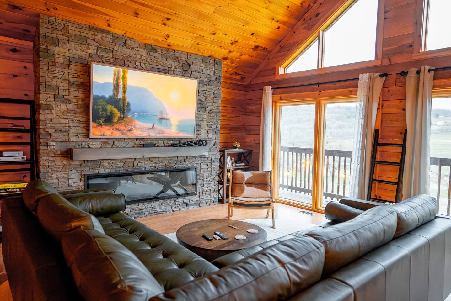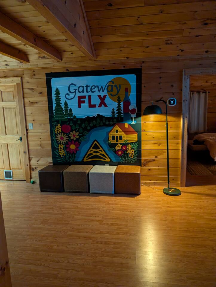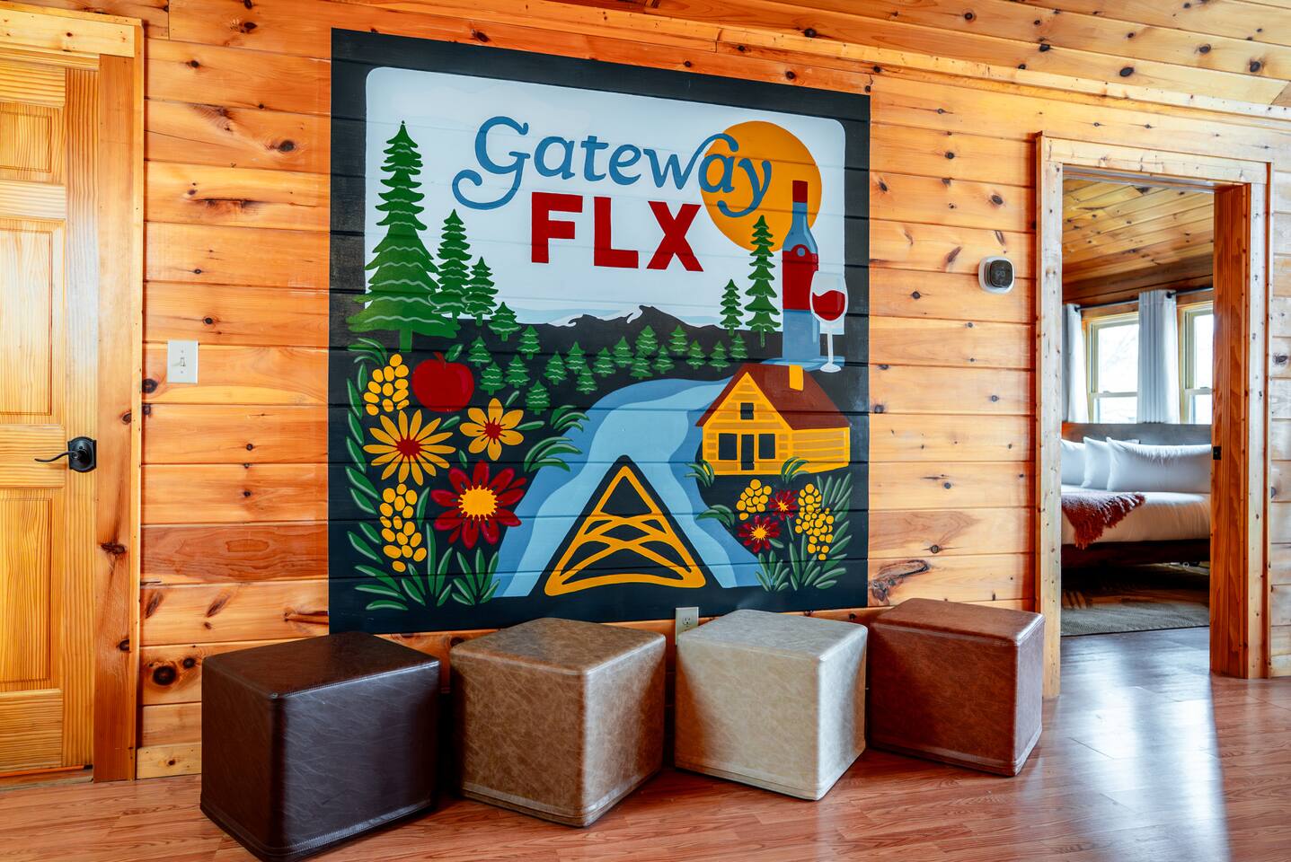 Some trips are about going hard. Some are about finally slowing down. Gateway FLX is built for both. Sometimes in the same afternoon. The front porch faces southwest across an open valley. It's the kind of view that makes people put their phones down. The back deck has a heated pool, hot tub, and fire pit. There's a barrel sauna. A full game room. Five acres with a forest trail out back. And the entire Finger Lakes within 30 minutes. If you're the one who booked this trip, your group will thank you. Sleep Five bedrooms sleep up to 15: Primary Suite (upstairs, ensuite): King Bedroom 2 (upstairs): Queen + Twin XL bunk Bedroom 3 (downstairs): King, King Bedroom 4 (downstairs): Queen Bedroom 5 (downstairs): Queen Common area (downstairs): Queen pullout sleeper sofa Every bedroom has a noise-canceling alarm clock with Bluetooth speaker, wireless charging, and USB charging. Unwind Heated pool (May through Sept/October), hot tub, barrel sauna, two fire pits (propane on the front porch, wood out back), four propane heaters, front porch outdoor dining and lounge seating overlooking the valley, and a 5-burner propane grill on the back deck. Play Game room: pool table (converts to ping pong), two arcade games, poker table, dartboard, and Xbox with Game Pass on a large-screen TV. Living room: 75" smart TV and record player. Four Bluetooth boomboxes around the property. Outside: volleyball, cornhole, basketball, soccer, and a hikeable forest trail on the property. Tech and Comfort Verizon FiOS WiFi, central A/C, Ecobee smart thermostats, whole-home water filtration, streaming on every TV (Disney+, Hulu, ESPN+), gas washer/dryer, countertop ice maker, Level 2 EV charger (Tesla + non-Tesla).