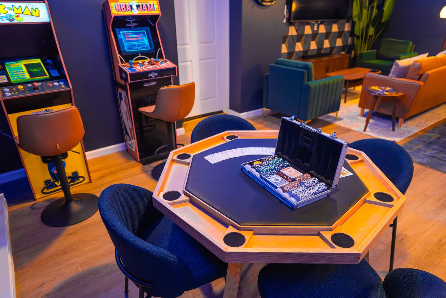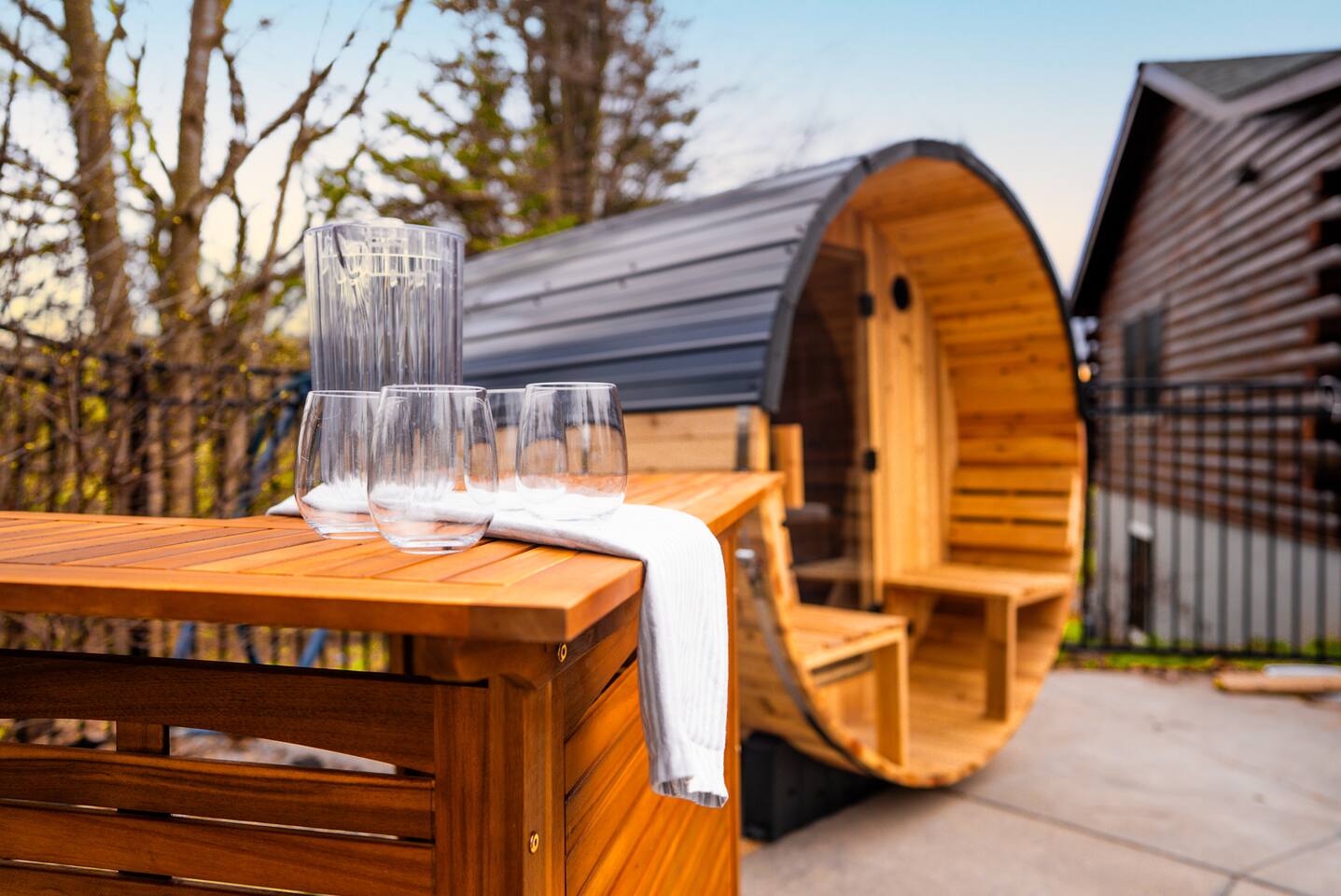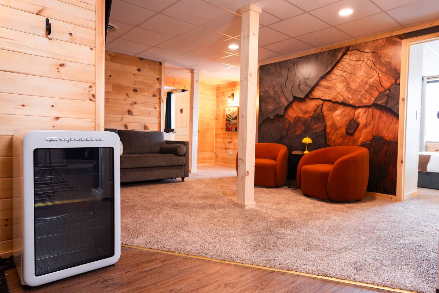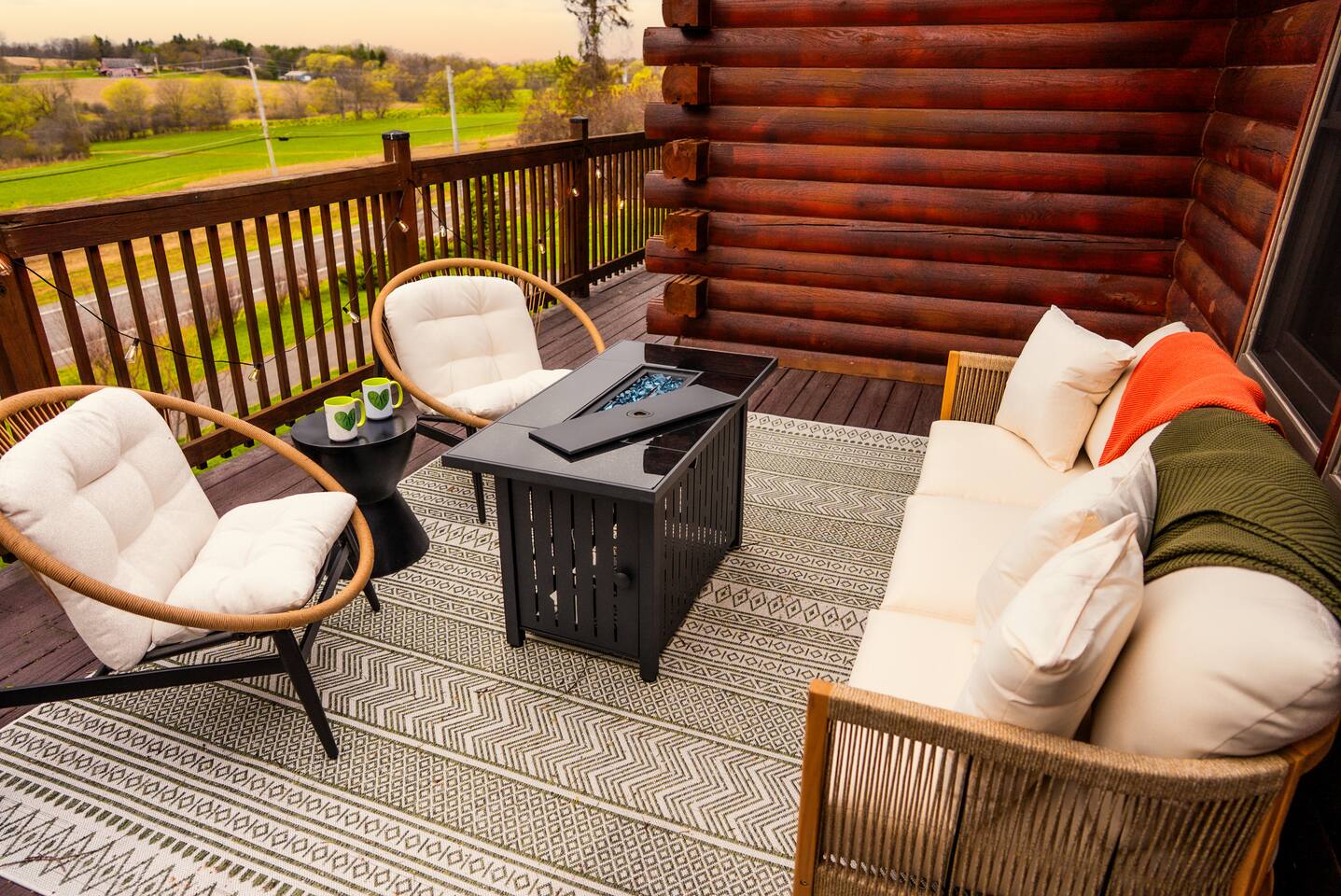 Some trips are about going hard. Some are about finally slowing down. Gateway FLX is built for both. Sometimes in the same afternoon. The front porch faces southwest across an open valley. It's the kind of view that makes people put their phones down. The back deck has a heated pool, hot tub, and fire pit. There's a barrel sauna. A full game room. Five acres with a forest trail out back. And the entire Finger Lakes within 30 minutes. If you're the one who booked this trip, your group will thank you. Sleep Five bedrooms sleep up to 15: Primary Suite (upstairs, ensuite): King Bedroom 2 (upstairs): Queen + Twin XL bunk Bedroom 3 (downstairs): King, King Bedroom 4 (downstairs): Queen Bedroom 5 (downstairs): Queen Common area (downstairs): Queen pullout sleeper sofa Every bedroom has a noise-canceling alarm clock with Bluetooth speaker, wireless charging, and USB charging. Unwind Heated pool (May through Sept/October), hot tub, barrel sauna, two fire pits (propane on the front porch, wood out back), four propane heaters, front porch outdoor dining and lounge seating overlooking the valley, and a 5-burner propane grill on the back deck. Play Game room: pool table (converts to ping pong), two arcade games, poker table, dartboard, and Xbox with Game Pass on a large-screen TV. Living room: 75" smart TV and record player. Four Bluetooth boomboxes around the property. Outside: volleyball, cornhole, basketball, soccer, and a hikeable forest trail on the property. Tech and Comfort Verizon FiOS WiFi, central A/C, Ecobee smart thermostats, whole-home water filtration, streaming on every TV (Disney+, Hulu, ESPN+), gas washer/dryer, countertop ice maker, Level 2 EV charger (Tesla + non-Tesla).
