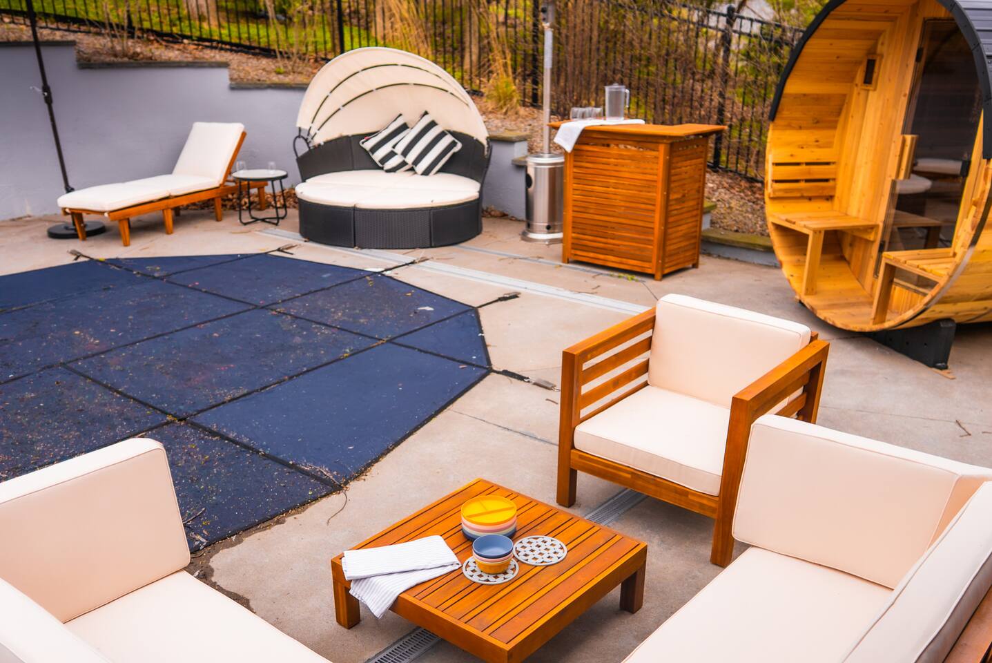 Dogs welcome (max 2, well-behaved). Please be aware that during winter months, we recommend a larger vehicle as the driveway is gravel and uphill. Guests must be 18+ to book. Do not book any events without messaging us first Heated pool available May through October (shoulder months weather dependent). Outdoor furniture should be covered and velcroed after use; close umbrellas when not in use. Trash pickup Wednesday AM; if you happen to be at the property, please set bins out Tuesday night. Exterior security cameras at pool area and downstairs entrance. Adjacent properties have tree stands; you may hear hunting activity nearby. Check for ticks after hiking on the property.